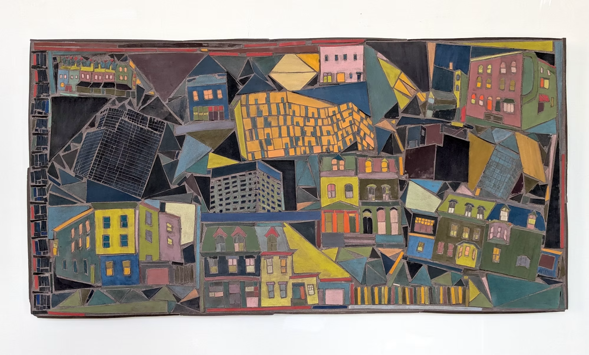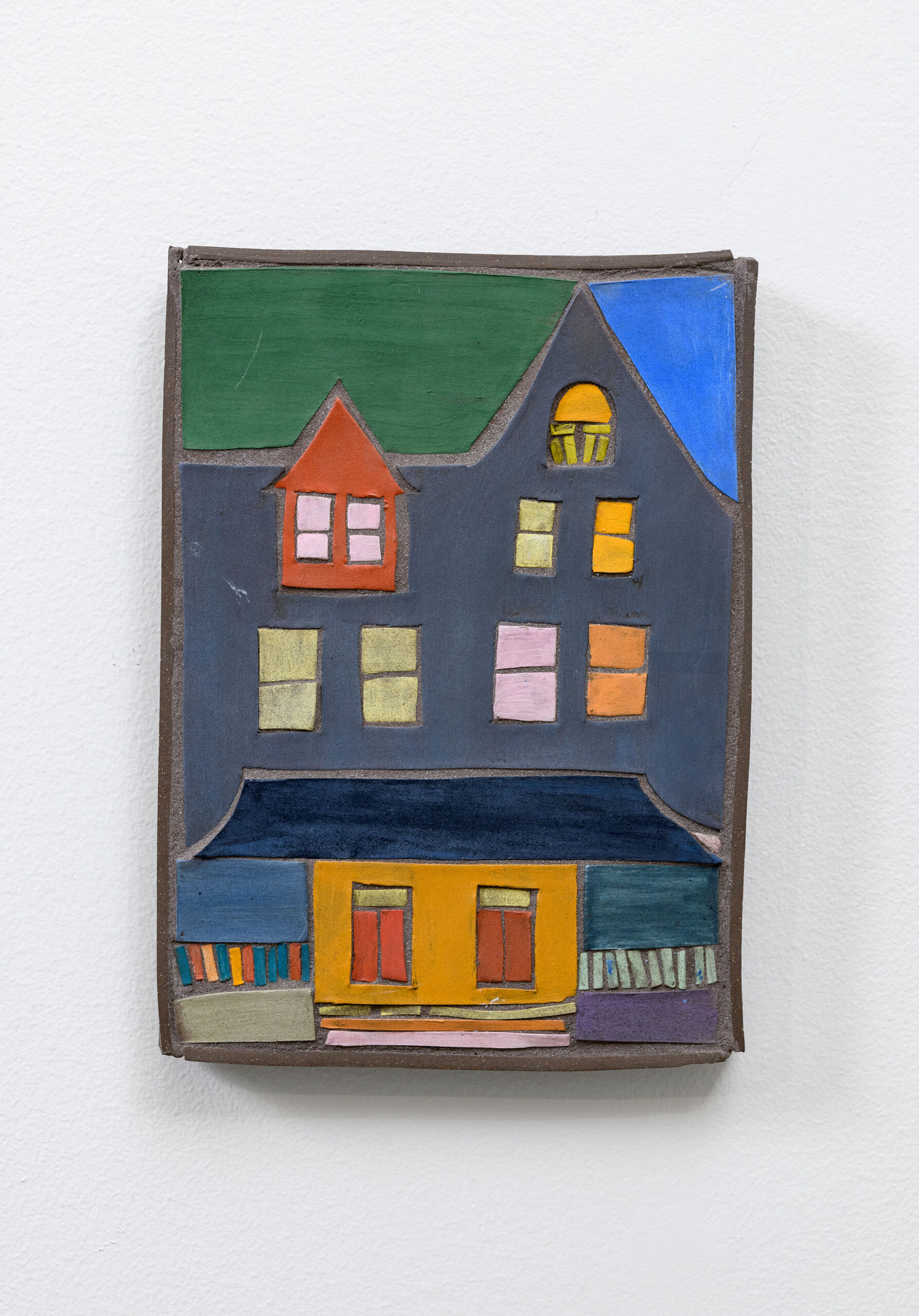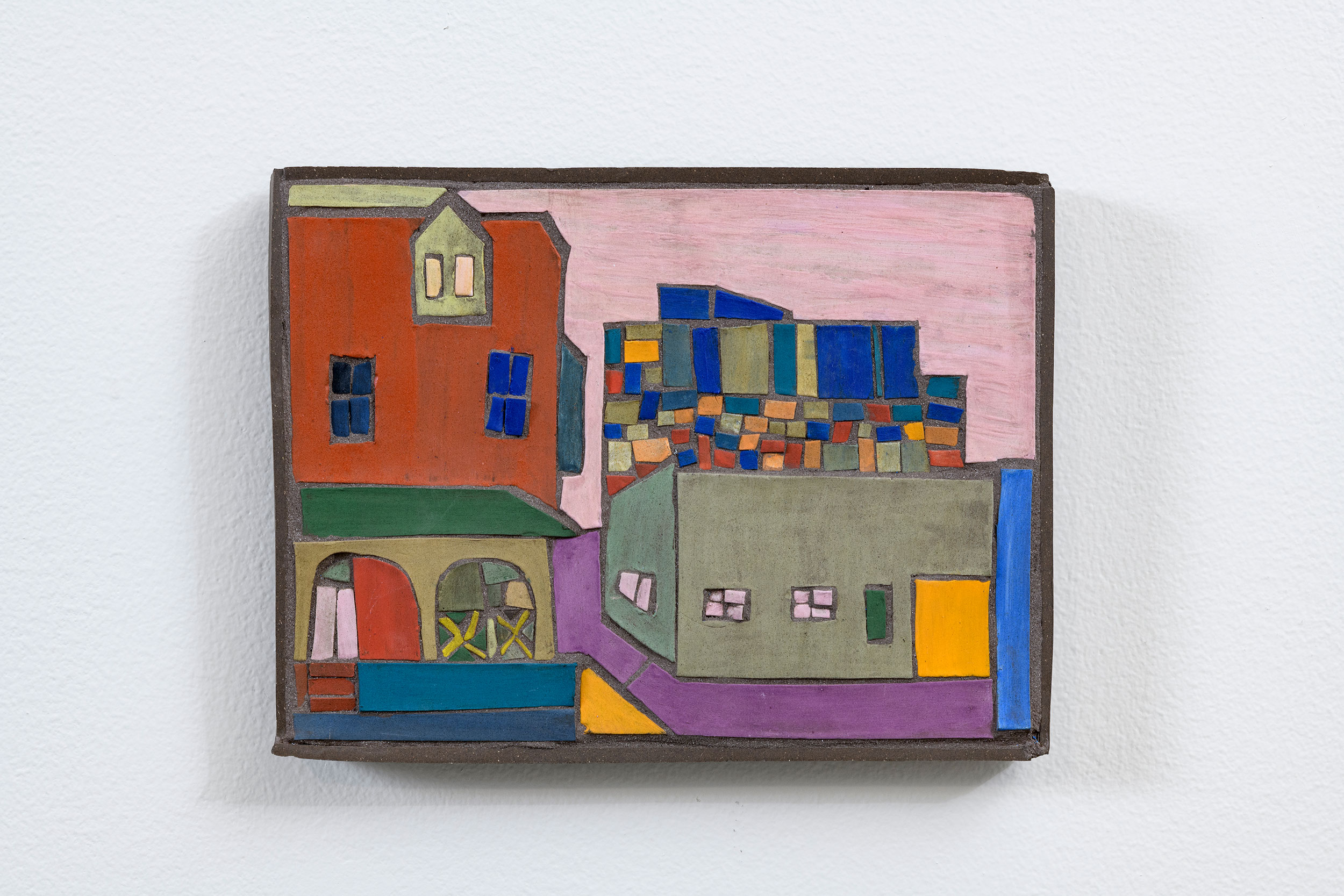 While steeped in research and in-depth knowledge of her chosen place, the artist emphasizes the importance of working in a state of “not-knowing” and exploration—always concerned with the next question, trying for something unfamiliar that doesn’t make sense at first. Clay, tile, and mortar—materials used to create brick and stone buildings—lend the work a self-reflexivity, while Johnson’s rich use of color infuses her arrangements with emotion. Relying on an unsteady hand to cut, paint and assemble the work, the final product displays its flaws to highlight the human touch. It is, in the artist’s words, a way of “knowing a place by hand.”