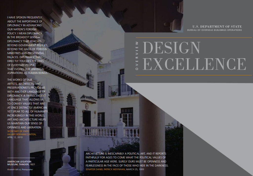 As stated in the guiding principles, the purpose and function of embassies and consulates is “to be safe, functional, and inspiring places for the conduct of diplomacy and to physically represent the U.S. Government to the host nation. A facility that represents the best of American architecture, design, engineering, and construction will be an appropriate workspace, and will also be contextually appropriate and become a respected landmark—representing the best of American Government, enterprise, and culture—in the host nation.”