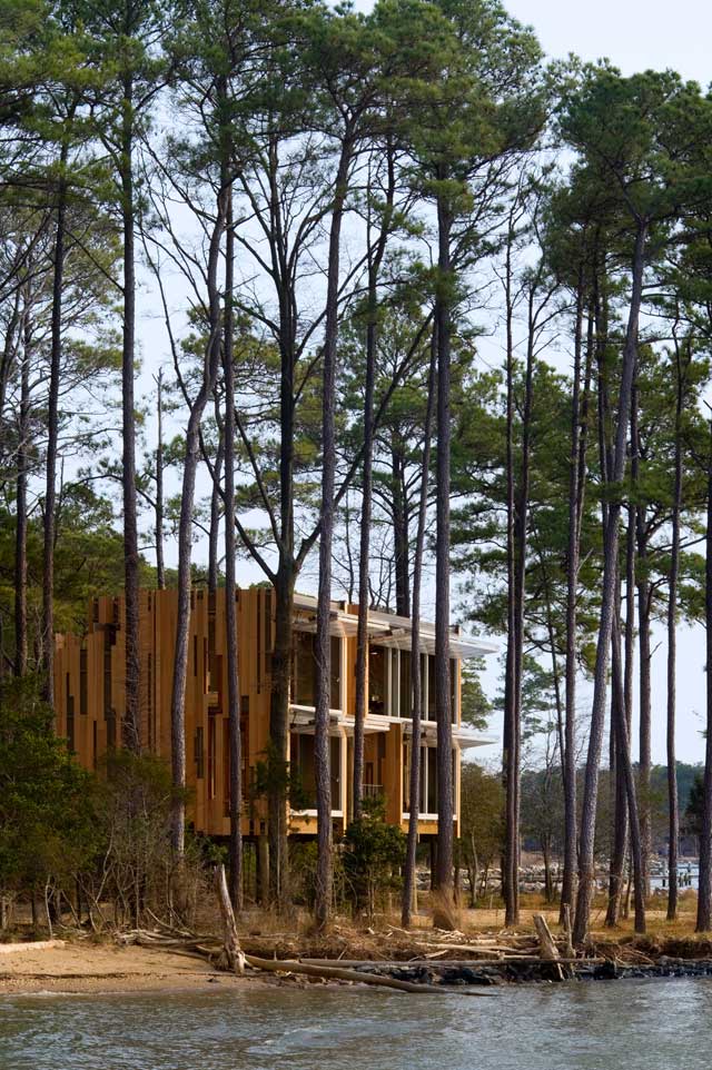A view of Loblolly House, a private home that was fabricated off site and assembled on Taylors Island in the Chesapeake Bay. © Peter Aaron/OTTO