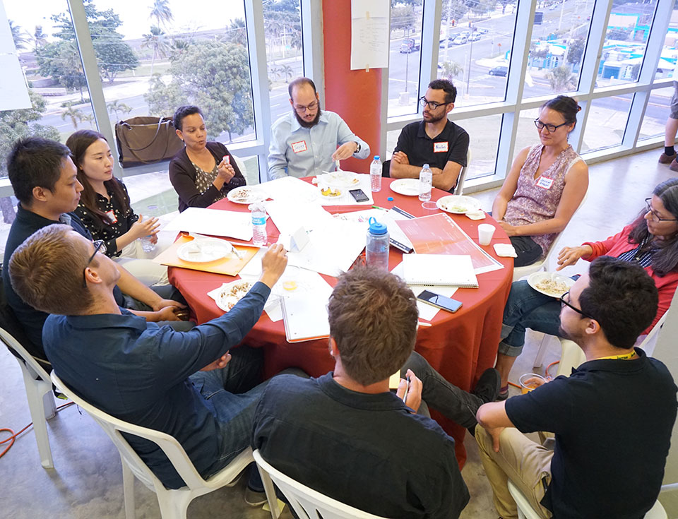 Interdisciplinary teams work together to organize on-the-ground efforts during the 2018 RISE Workshop hosted by the National Institute of Energy and Island Sustainability (INESI). ©INESI