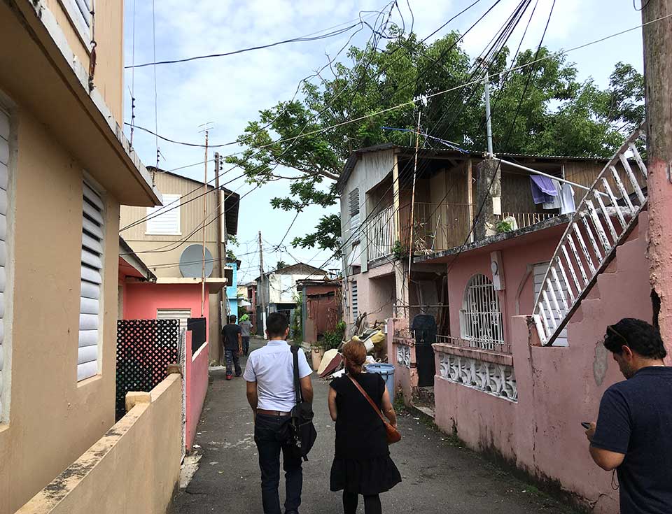 KieranTimberlake Associate Fátima Olivieri visits the Playita community in San Juan with a group led by non-profit Resilient Power Puerto Rico. Residents were affected by flooding and wind damage during Hurricane Maria. ©Nicholas Pevzner