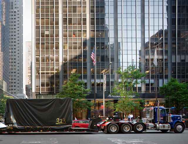 A flatbed truck carries Cellophane House™ components to the assembly site in midtown Manhattan. © Albert Vecerka/Esto