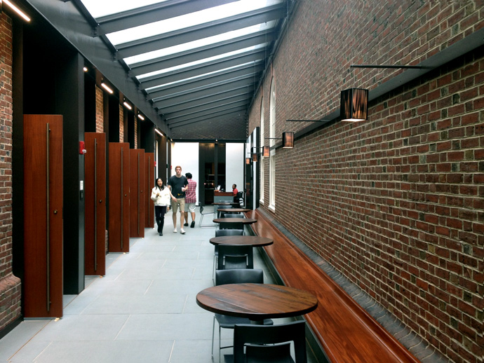 A new light court replaces an under-utilized alleyway between the dining hall and new common spaces at McKinlock Hall.
