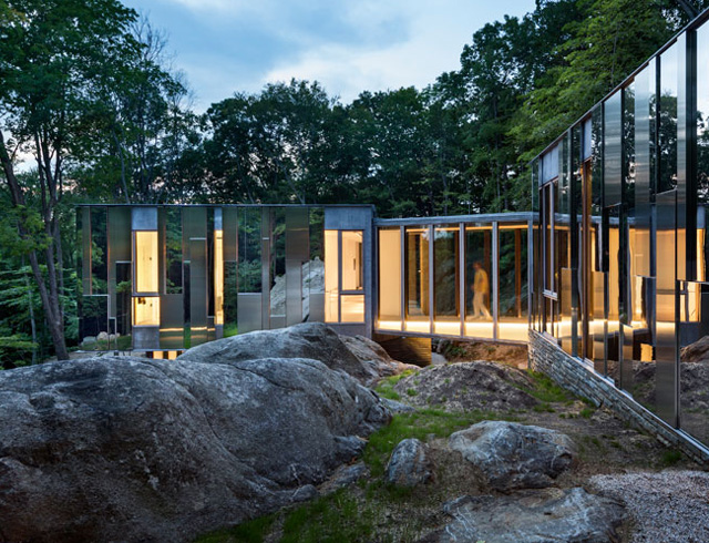 The site for Pound Ridge House presented an opportunity to design a home within the rocky terrain created by glacial activity across the ages. © Peter Aaron/OTTO