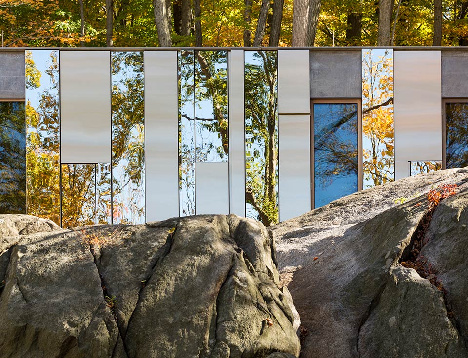Pound Ridge House, a private residence located north of New York City in Westchester County, New York, was recently featured in the Spring 2016 edition of Dwell magazine. The article, written by Aileen Kwun, draws attention to the care KieranTimberlake took in ensuring that the residence’s signature reflective exterior would not pose a threat to local birds.