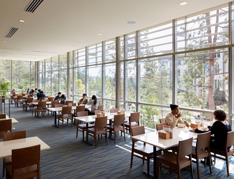 A grand stair and a transparent dining commons welcome students to the Sproul Carnesale Complex at UCLA. Read about the new buildings’ first residents at the UCLA Newsroom. © Tim Griffith