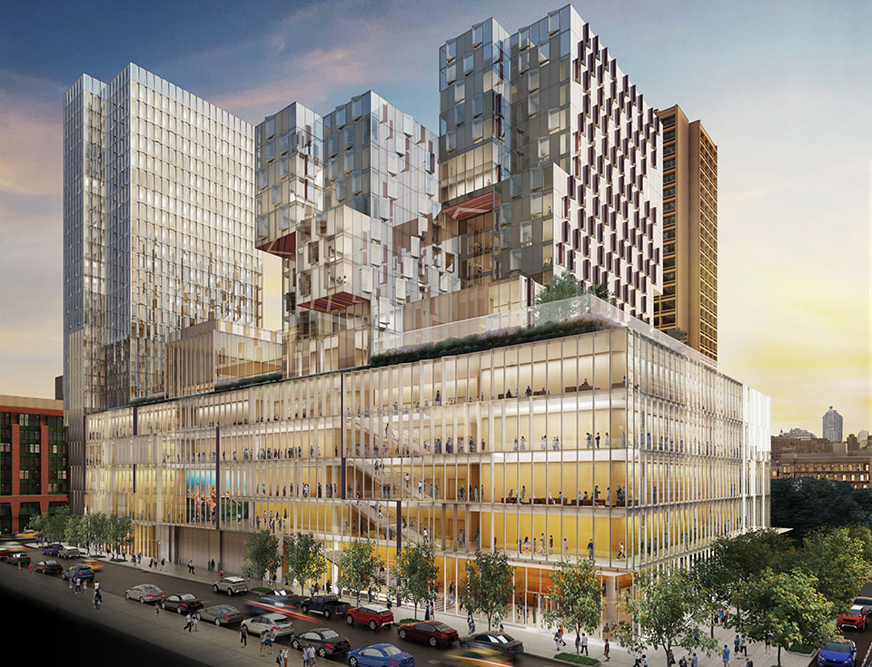 181 Mercer is a 735,000-square-foot multi-use building that contains classrooms, art and athletic facilities, meeting areas, and student and faculty housing.Illustration by studioAMD
