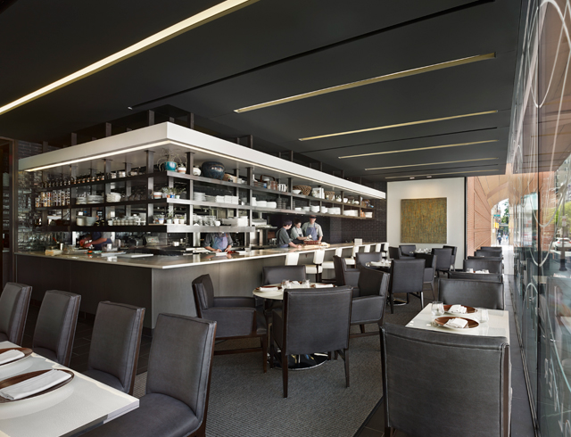 With open views into the kitchen and out to the street, diners experience both the preparations by the master chefs and the life of the city. © Barry Halkin