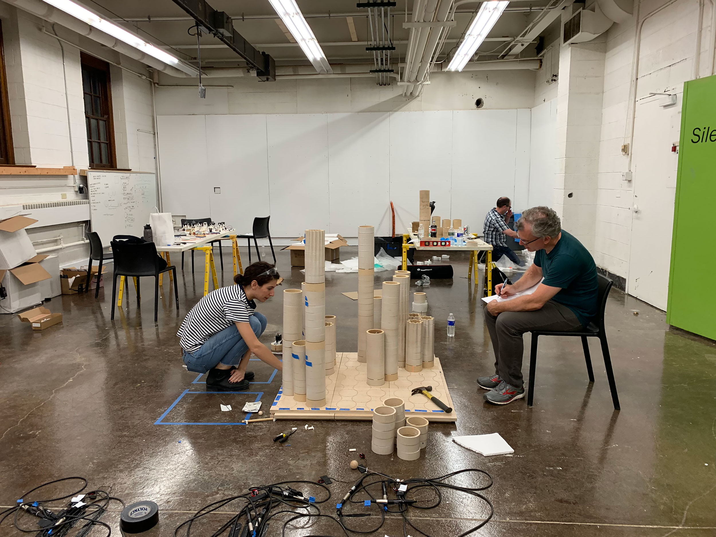 Once categorized, the team combined individual components into an instrument for performance. Composer Joshua Stamper arranged a composition, and the team rehearsed the composition with Stamper before breaking down and re-assembling the instrument in Silo City.
