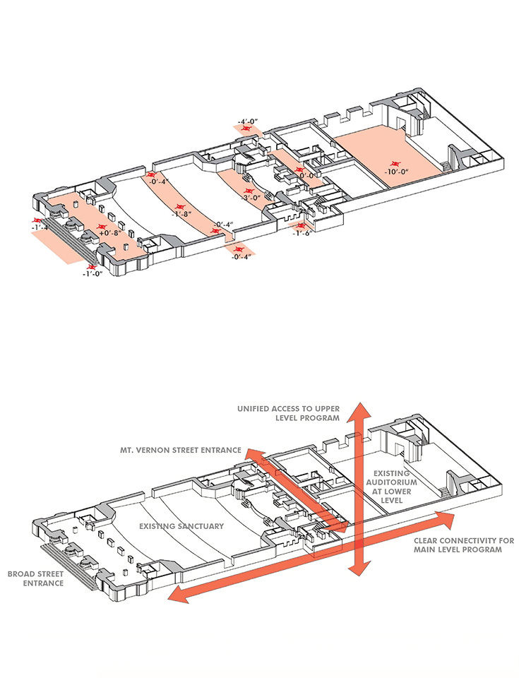Congregation Rodeph Shalom’s renovations and expansion enhance circulation, improve accessibility, and encourage community, but most importantly their design enhances the historic significance of the existing building and assures the congregation’s continued growth and evolution as a regional center for Jewish life.