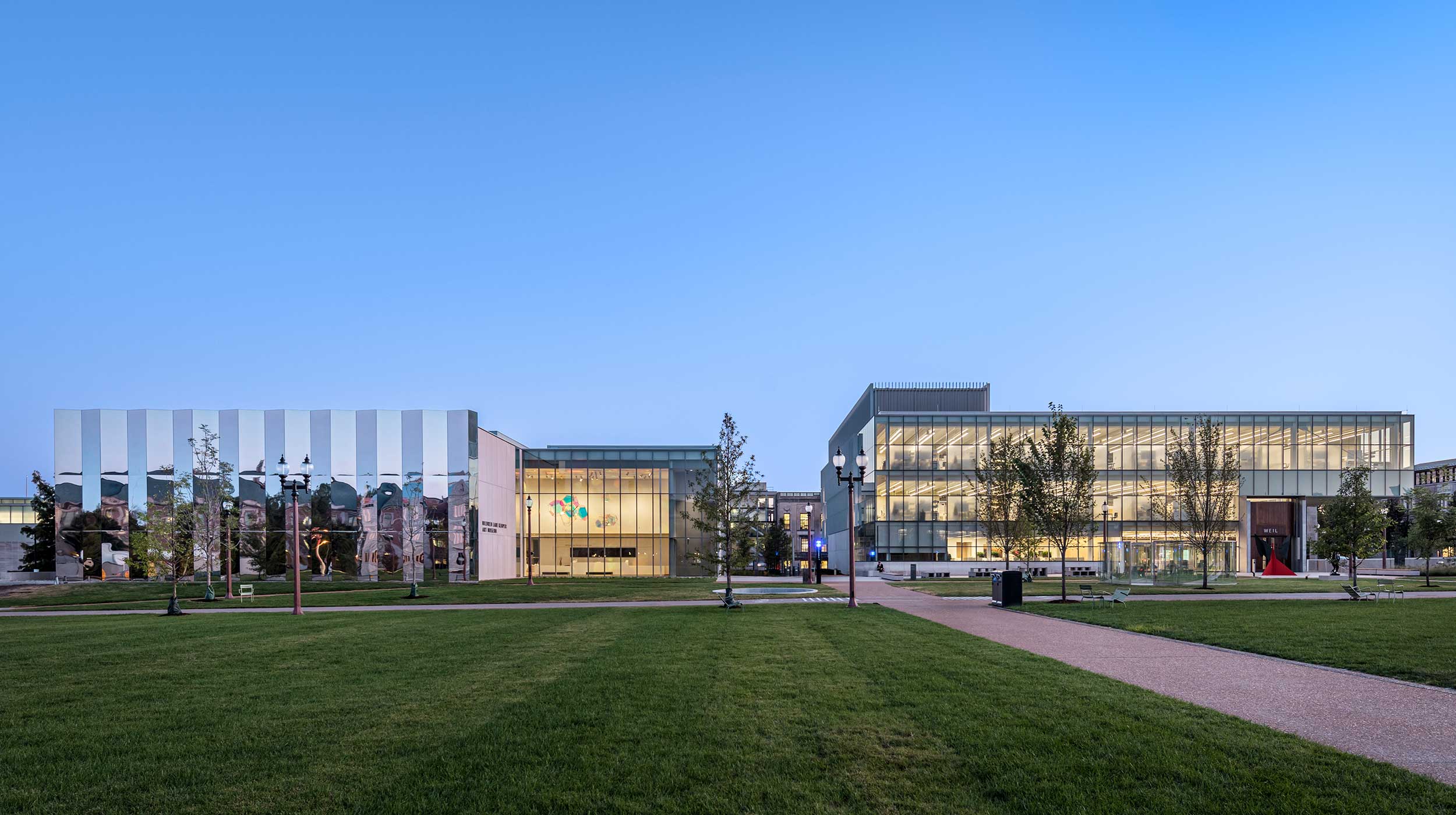 In 2015, Washington University embarked on a major campaign to transform the East End into a vibrant and inviting gateway to the university. The car-centric site has been turned into a major new campus landscape framed by new buildings and pedestrian circulation in front of Brookings Hall, the campus’s landmark main building. Hundreds of surface parking spaces are now underground in the 790-space East End Garage, creating an expansive new park above. Five new buildings strengthen academic connections, enhance campus green space and circulation, and improve accessibility. Five of the eight major components in this capital campaign were designed by KieranTimberlake and completed in 2019.