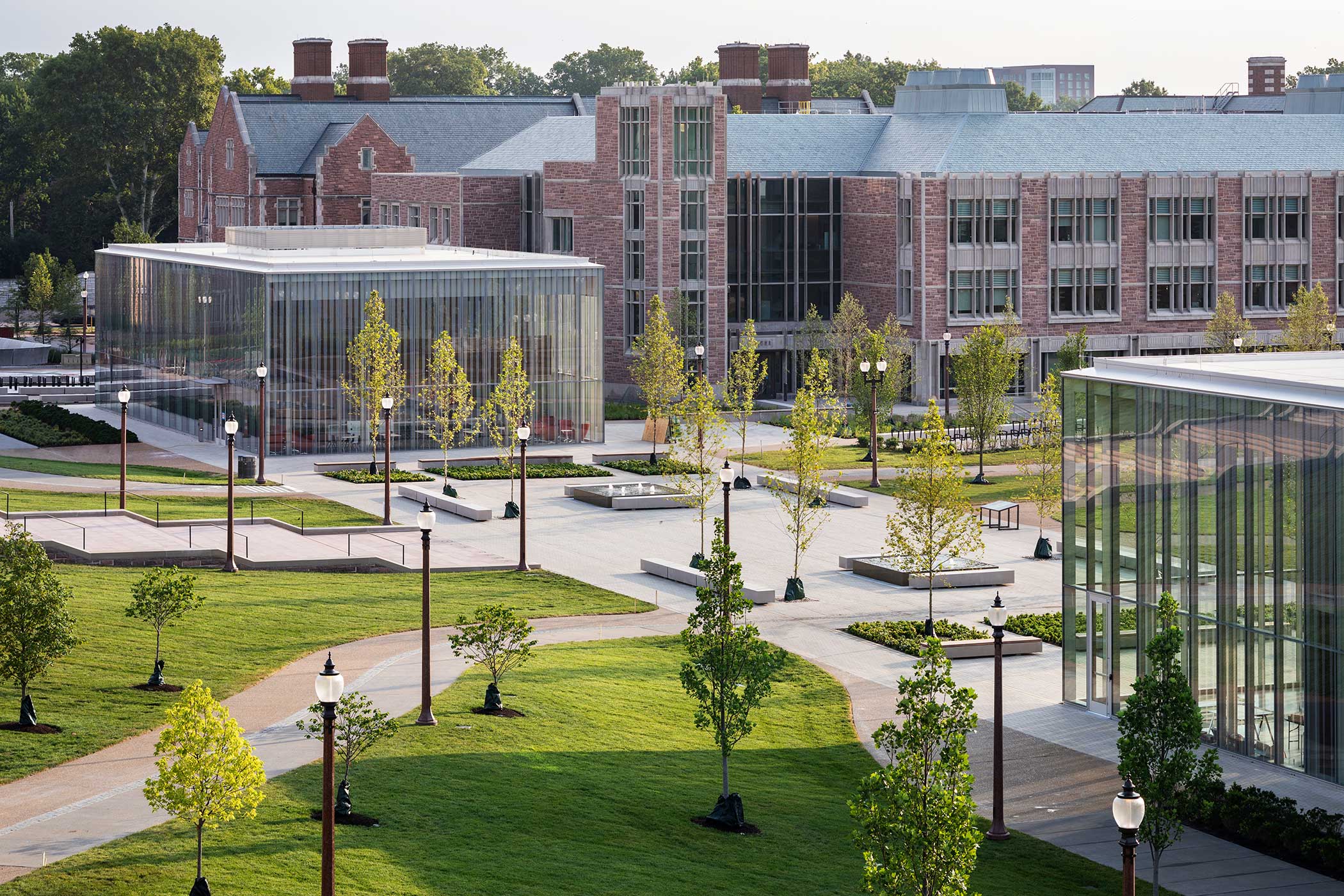 The Danforth Campus at Washington University in St. Louis was designed by Cope & Stewardson in 1900. It is defined by Collegiate Gothic buildings, landscaped quadrangles, and pathways that encourage academic connections in a beautiful park-like setting. But over time, Danforth’s East End of campus had become plagued by roads and parking lots, interrupting this original planning vision.