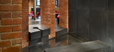 Elements common to many religious traditions—including earth, stone, water, and light—contribute to the tranquility and welcome of the Multifaith Center below ground. © Halkin Photography LLC