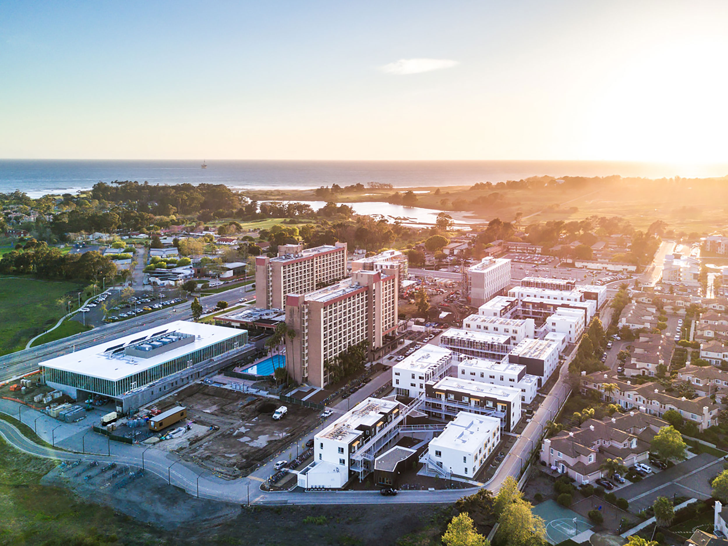 When the University of California, Santa Barbara, purchased property approximately a mile from the core campus, they had a clear vision for its transformation. The former business park needed to incorporate low- and high-density student and faculty housing, a convenience store, and dining and student life facilities into an integrated complex that connects students to each other and the main campus.